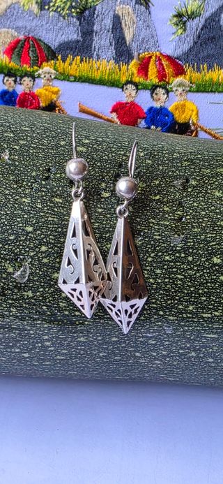 Preciosos pendientes antiguos de estilo mejicano. Son dos pendientes de plata con diseño calado. Se aprecian delicados y elegantes. Son muy antiguos .Van marcados - Diseño calado - Estilo mejicano - Plata 🦋 SE PUEDE VER SIN COMPROMISO 🦋 SI NECESITAS MAS FOTOS DIMELO 🦋SOMOS JOYERIA ONLINE. 🦋 INTAGRAM #juanarodriguezjoyeria. 🛑NO REBAJAS .TENEMOS PRECIOS FIJOS