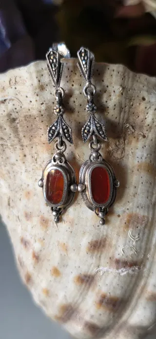 Elegantes pendientes antiguos de plata de ley con un diseño ovalado y detalles en forma de hoja. La piedra central es de un vibrante color naranja. - Plata de ley. - Piedra central ovalada. - Diseño detallado de hojas. 🌍POR FAVOR CUALQUIER DUDA PREGUNTA 🌍TENEMOS PRECIOS FIJOS (LEER) 🌍TAMBIEN ENTREGAMOS EN MANO 🌍NO RESERVAMOS . 🌍ESTO ES NUESTRO NEGOCIO .NO UN CAPRICHO 💖 LA FOTO REFLEJA EXACTAMENTE LA.PIEZA