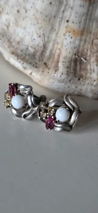 Elegantes pendientes antiguos de plata con detalles de piedras. Son divinos .pegaditos a la oreja Cierre omega - Diseño floral con piedras en tonos burdeos y amarillos. - Cierre de presión. 🌍POR FAVOR CUALQUIER DUDA PREGUNTA 🌍TENEMOS PRECIOS FIJOS (LEER) 🌍TAMBIEN ENTREGAMOS EN MANO 🌍NO RESERVAMOS . 🌍ESTO ES NUESTRO NEGOCIO .NO UN CAPRICHO 💖 LA FOTO REFLEJA EXACTAMENTE LA.PIEZA