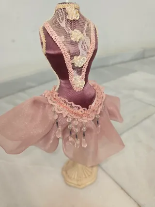 Original Joyero antiguo con forma de busto de mujer, para tocador o mesitas de noche, ideal para organizar tus collares, pulseras y pendientes. - Diseño delicado con detalles de encaje y flores. - Soporte de metal blanco con múltiples brazos para colgar accesorios. - Base cubierta de terciopelo burdeos. - Medidas 15 cm.