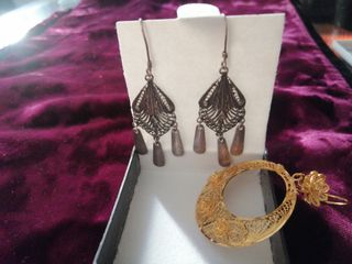 reproducción pendientes para fallera o traje regional. Laton chapado en plata. Cierre antiguo.