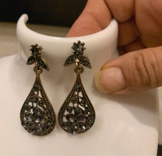 pendientes de gota de lagrima Bohemia para mujer, aretes de cristal gris, Color dorado antiguo, joyería de boda turca, regalo nupcial Vintage