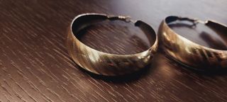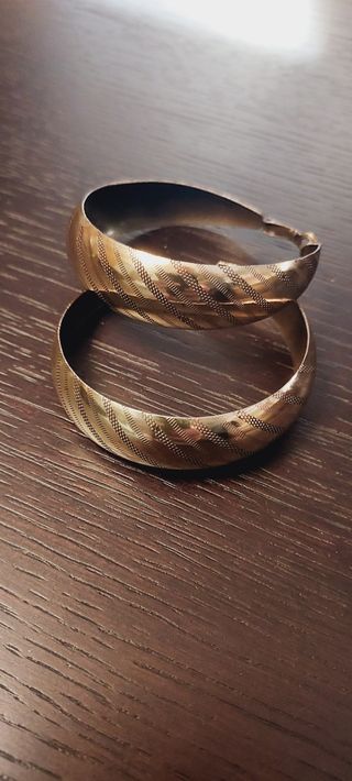 Pendientes dorados en forma de aro. Antiguos y labrados.