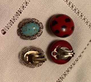 Los redondos plata y piedra turquesa marcados 925. PRECIO 14€ otros con pequeñas turquesas cierre clip PRECIO 10€ Los de corazones orientales difícil de encontrar PRECIO 14€ Y los de piedra negra y roja 10€