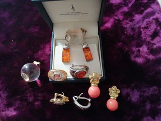 Antiguos. Los de ámbar autentico y plata VENDIDOS Los de bola únicos difícil encontar, NO es cristal cierre pinza de plata, PRECIO 15€ Los de plata con piedra color ambar cierre omega PRECIO 12€ Los dorados con flor y piedra rosa PRECIO 12€ Los dorados con circonitas y central color morado clarito marcado Riley cierre omega PRECIO 12€