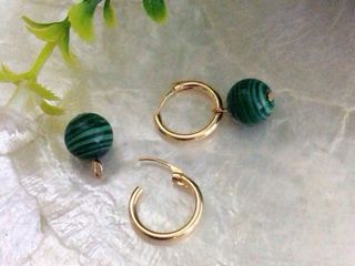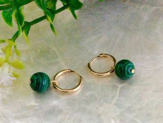Aros de oro 18k con bola de malaquita