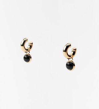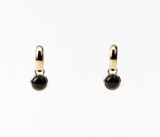 Pendientes aro dorados con bola de cristal de color negro. Cierre con tuerca.
