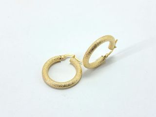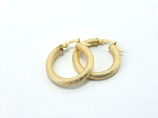 Elegantes pendientes de aro. - Fabricados en oro de 18 quilates. - Diseño con textura.