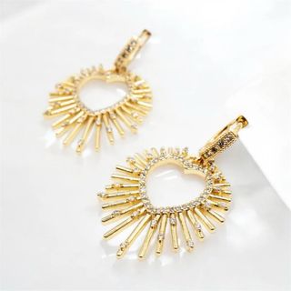 Elegante pendiente con forma de corazón. - Diseño en forma de corazón. - Detalle central con piedra. - Cierre de aro dorado. Chapado en oro de 24 quilates.