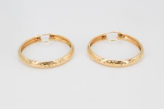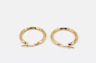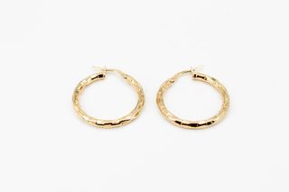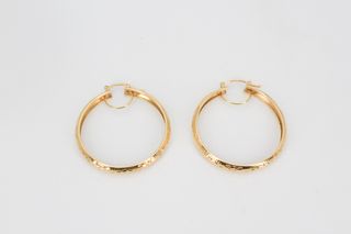 Elegantes pendientes de aro en oro de 18 quilates. Un diseño clásico con un toque moderno. - Fabricados en oro de 18 quilates. - Diseño de aro con detalles texturizados.