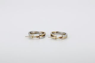Conjunto de pendientes con un diseño elegante y moderno. - Pendientes tipo aro. - - Detalles ondulados y pedrería.