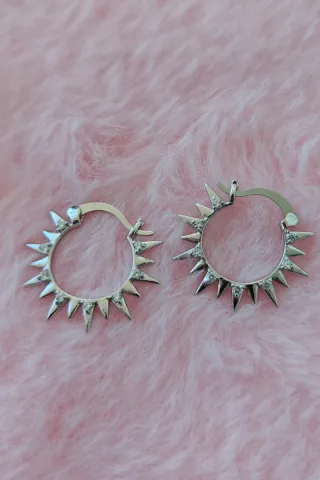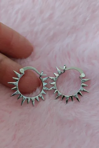 Pendientes de aro con diseño de sol radiante. - Fabricados en plata. - Estilo moderno y llamativo.sello 925