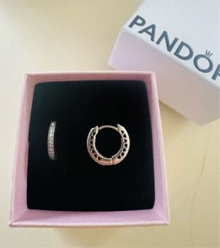 Estos pendientes de aro pequeños en plata tienen el tamaño perfecto para usarlos a diario. Los corazones recortados le dan un toque romántico mientras que las circonitas cúbicas les aportan brillo. Se envían en bolsita blanca de terciopelo con logo PANDORA. Caja no incluida.