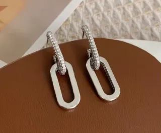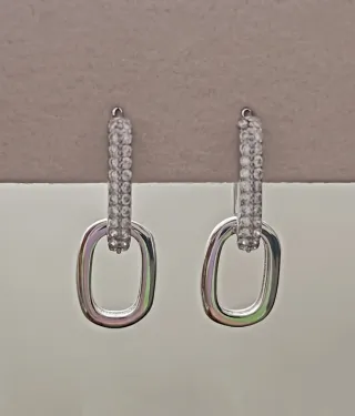Elegantes pendientes con un diseño moderno y sofisticado. - Aro con incrustaciones de brillantes. - Colgante ovalado liso.