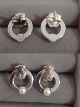 Elegantes pendientes Tous con diseño de aro y detalle de perla. - Fabricados en plata. - Cierre de presión.