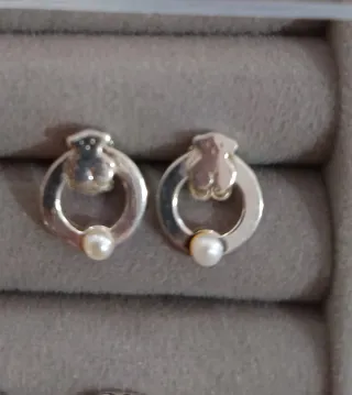 Elegantes pendientes de aro de la marca Tous. - Diseño en plata. - Detalle del oso en el frontal del aro. No se envía con caja de la marca.