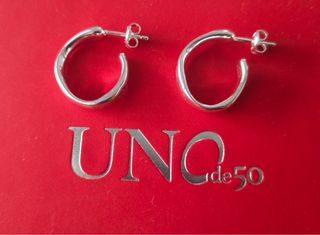 Elegantes pendientes de aro de la marca Uno de 50. - Diseño moderno y minimalista. - Acabado plateado brillante. - Cierre de presión seguro.