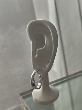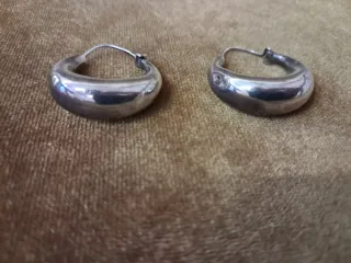 Set de pendientes tipo aro en color plateado. Son un accesorio versátil para complementar tu estilo. - Diseño clásico de aro. - Cierre seguro.