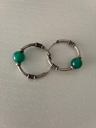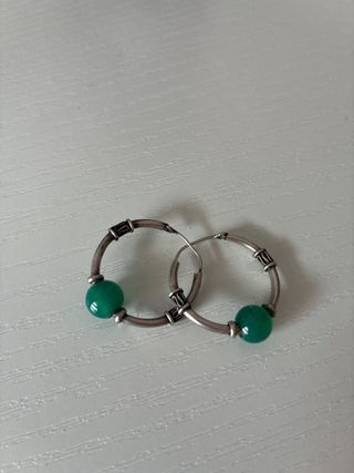 Elegantes pendientes de aro con un detalle de piedra verde. pendientes de aro, de plata 925 con ónix verde - Diseño de aro. - Detalle de piedra ónix verde - Fabricados en plata 925 Se envía por Wallapop Mas productos en mi perfil Si compras varias unidades descuento Se envía todo en bolsitas de regalo y plata limpia . Envíos en menos de 24 horas.