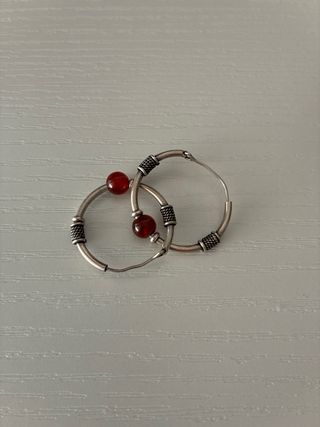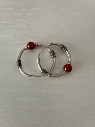 Elegantes pendientes de aro con un diseño único. Pendientes de aro de plata 925, el mineral es una ágata cornalina - Elaborados en plata 925 - Detalle de mineral ágata cornalina - Adornos texturizados en el aro. Se envía por Wallapop Mas productos en mi perfil Si compras varias unidades descuento Se envía todo en bolsitas de regalo y plata limpia . Envíos en menos de 24 horas.