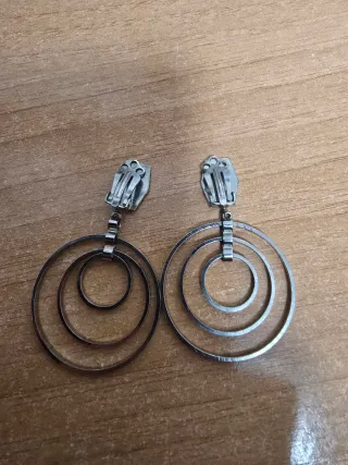 Elegantes pendientes con diseño de aros concéntricos. Cuentan con un clip para su sujeción. - Acabado plateado brillante. - Cierre de clip.