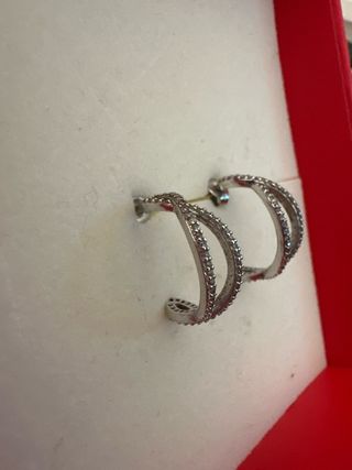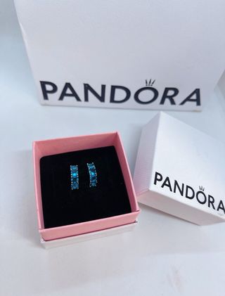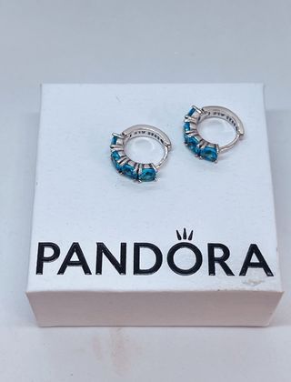 Elegantes pendientes de aro de la marca Pandora, con un diseño de abrazo y detalles en azul. - Diseño de aro. - Acabado plateado. - se venden unicamente con su caja