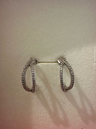 Elegantes pendientes de aro con diamante en baño de plata. Su diseño moderno los hace perfectos para cualquier ocasión. - Resistente al agua, no pierde su color ni el brillo, hipoalergénicos - Diámetro aproximado: 2 cm. - Acabado brillante. Nuevos con caja de regalo