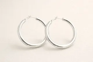 Pendientes Aro baño plata con un diámetro de 5 cm. Nuevo. - Diseño clásico y elegante. - Acabado pulido brillante. - Permanece brillante y duradero en el tiempo.