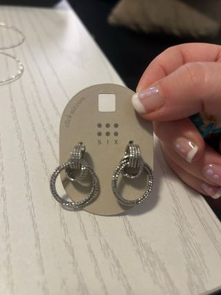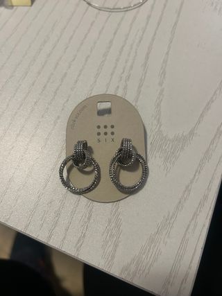 Elegantes pendientes de la marca SIX con un diseño de aro doble entrelazado. - Color plateado. - Cierre seguro.