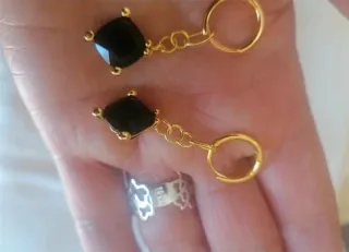 Pendientes Tous piedra negra onix plata baño oro.