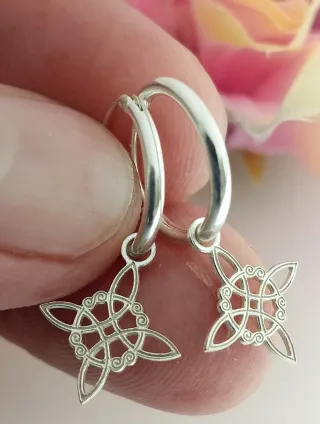 Pendientes aro con nudo de bruja en plata de ley 925. ideal para regalo. muy ponible y protege contra el mal de ojo🙏. medidas. aro 1.40 cm de diámetro. nudo de bruja. 1.20 cm de alto. 1.20 cm de ancho.