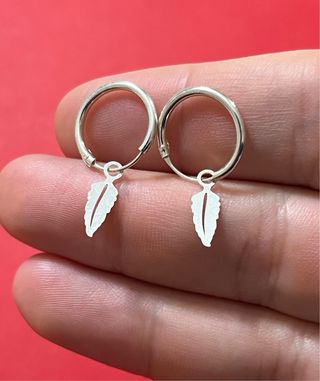 pendientes de aro con pluma en plata de ley 925. se queda preciosa puesta. un diseño para llevarlo todos los días. medidas aro 1.50 cm de diámetro. pluma 1.10 cm de alto y 0.50 cm de ancho.