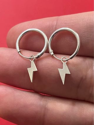 Preciosos aros con rayos colgando en plata de ley 925. Un diseño muy clásico para llevarlo siempre contigo. Mire bien las medidas porque las fotos son aumentandas para ver la belleza del aro. Gracias. Medidas Aro mide 1.30 cm de diámetro. El rayo mide 1.00 cm de alto por 0.50 cm de ancho.