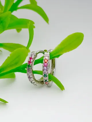 Pendientes De Plata De Ley 925 de mini de aro con circonitas autenticas rodeadas de colores -Modelo clasico -ideal para un regalo -Nuevo a estrenar -con su caja pequeña de regalo -Diametro: 1.30cm