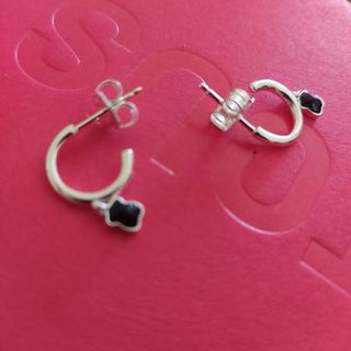 Elegantes pendientes de aro con un detalle colgante. - Diseño de trébol negro. - Acabado plateado.