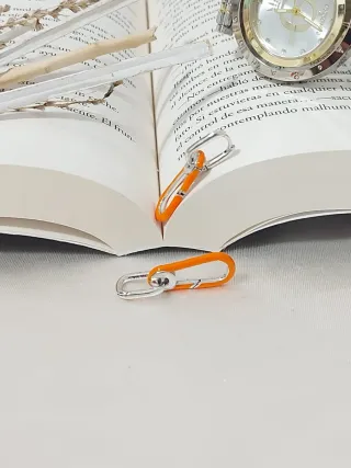 Pendientes de aro con un diseño moderno y llamativo. - Combinación de naranja y plata. - Cierre seguro.