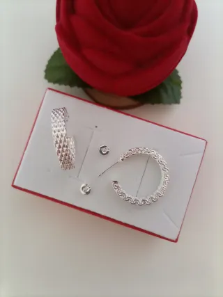 Pack de pendientes de aro plateados en varios tamaños y estilos Se encuentran en buen estado y sin usar Perfectos para uso diario Se venden juntos o por separado Los vendo porque no los he usado