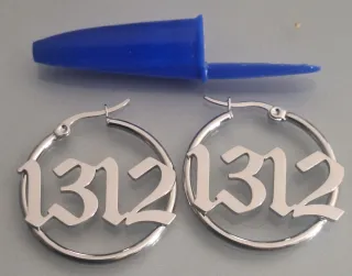 Pendientes de aro con el número 1312 grabado. - Diseño moderno y llamativo. - Acabado plateado brillante. #1312 #pendientes