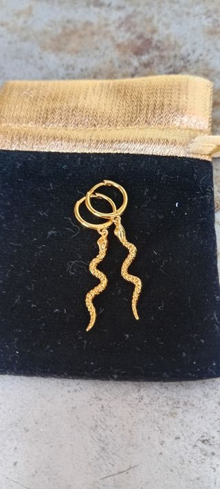Preciosos pendientes de aro con colgantes de serpiente. ✨ Son dos pares de pendientes dorados, con un diseño elegante y detallado. Plata de primera ley color dorados,medida en foto - Diseño de serpiente. - Perfectos para añadir un toque de estilo a tu look.