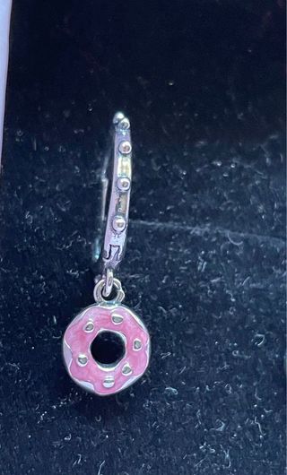 Pendientes de plata aro decorado con colgante de donuts rosa esmaltado.