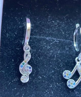 Pendientes plata aro con notas de música con piedras de color. Nuevo sin estrenar.
