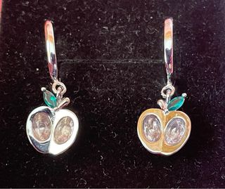 Pendientes plata aro con manzana. La manzana por un lado tiene unos cristales rosas y por el otro es color rojo esmaltado. Nuevo sin estrenar.