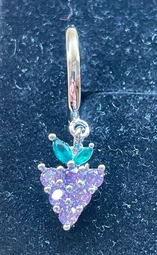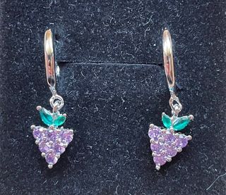 Pendientes plata aro con racimo uvas con piedras moradas y verde. Nuevo sin estrenar.