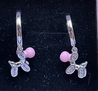 Pendientes plata aro perro salchicha con esmalte rosa. Nuevo sin estrenar.