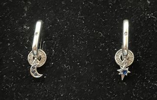 Pendientes plata aro rectangular con estrella y luna con piedras azules y círculo redondo con piedras blancas. Nuevo sin estrenar.