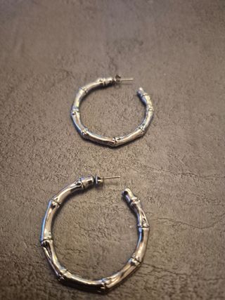 Pendientes con un diseño inspirado en el bambú. - Acabado plateado. - Diseño de aro.