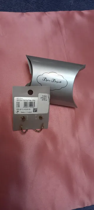 Pendientes plata aro y corazón en tono rosado con piedras. Nuevo sin estrenar.