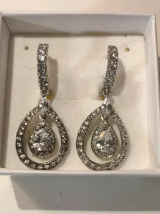 Elegantes pendientes con diseño de aro y colgante en forma de lágrima. Un accesorio que aporta brillo y sofisticación. - Diseño de aro con colgante. - Detalle de piedras brillantes.
