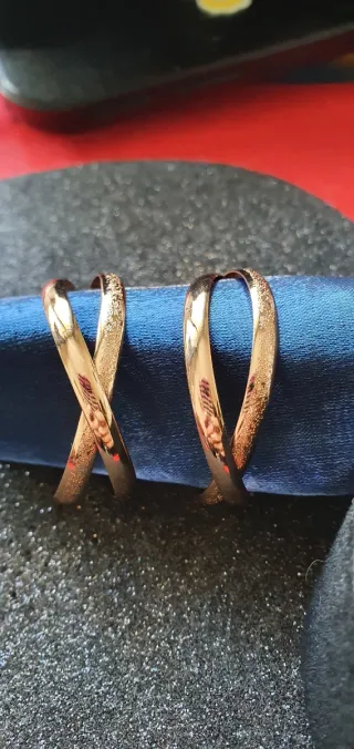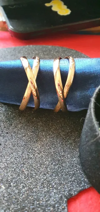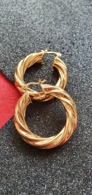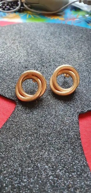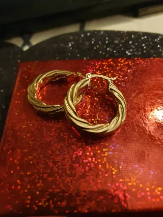 Pendientes de metal dorado macizo en formado aro trenzado. Cierre a presión. Se hacen lotes con descuento.