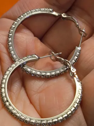 Elegantes pendientes de aro vintage de la marca Swarovski. Un accesorio que aporta un toque de brillo y sofisticación. - Diseño de aro con incrustaciones de cristales. - Acabado plateado.